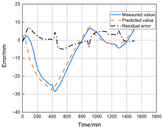 The predicted residuals of the model are shown in Figure 6, the maximum value of residuals is about 7.4, which is much smaller than the error range and more uniformly distributed, but the residuals are larger in the process of machine start-up from a cold state, and the model prediction results have phase overrun.