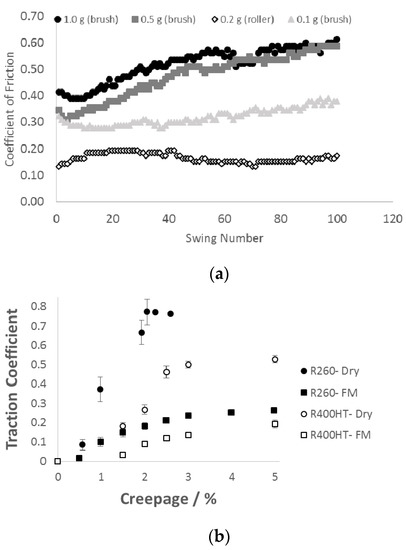 (a,b) Friction data for curve lubricant retentivity testing with different disc roughness [19].