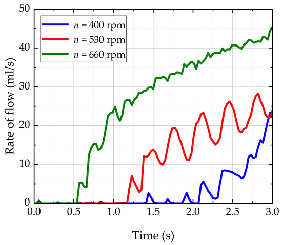 | Rotational Speed n (rpm) | Running Time (s) | Numerical Average Oil Flow Rate (mL/s) |