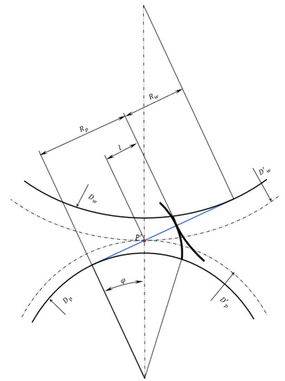 where and are the angular velocities of the pinion and wheel gear, and the pitch diameter for the pinion and wheel are shown by and in Figure 2.