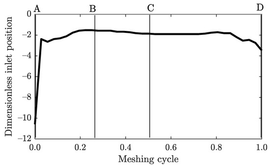where . Furthermore, ,, and are lubricant-specific parameters obtained experimentally [51]. The shear rate is calculated using the lubricant film thickness at the centre of the contact domain. Note that Sivayogan et al. [39] showed that under the current operating conditions some regions of the meshing cycle can be shear-independent. In these regions , resulting in lubricant viscosity being solely dependent on the generated pressures.