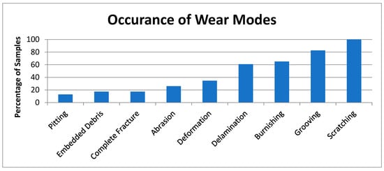 Mutually exclusive percent wear mode occurrences in the liners are presented in Figure 2.