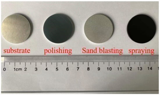 The PTFE was modified by graphite and MoS2, and the main composition of C-MoS2-PTFE coating was shown in Table 1. As illustrated in Figure 1, 4032 aluminum alloy matrix material was cylindrical with a diameter of 28 mm and a thickness of 2 mm to simplify experiments. The coating surface was polished and cleaned before the test, and the coating surface was sandblasted to enhance the bonding between the coating and the matrix material. After sandblasting, a 3 μm thick C-MoS2-PTFE coating is uniformly applied to the surface of 4032 aluminum alloy using a spraying process [18]. The specimens were placed in a muffle furnace at 380 °C for 15 min to cure the modified PTEF coating at a constant temperature after spraying. The surface of the 4032 aluminum alloy was polished, and the Ni-coating specimens of the 4032 aluminum alloy through electroplated on the surface of the 4032 aluminum alloy. The surface of 4032 aluminum alloy is polished, and the surface anodized specimens of 4032 aluminum alloy were formed by putting 4032 aluminum alloy into the electrolyte solution for electrolytic treatment.
