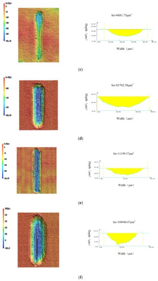 3.4. Microscopic Analysis of the Abrasion Mark Characteristics