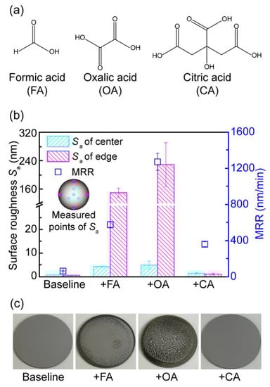 3.1. The Performance of Three Typical Carboxylic Acids in 18CrNiMo7-6 Steel CMP
