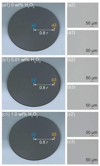 - Wang, Y.; Xu, R.; Wang, Y.; Wang, Z.; Su, J. Study on Dispersant of Hydrogen Peroxide-Oxalic Acid Polishing Slurry in Chemical Mechanical Polishing of 304 Stainless Steel. J. Phys. Conf. Ser. 2020, 1622, 012097. [Google Scholar] [CrossRef]