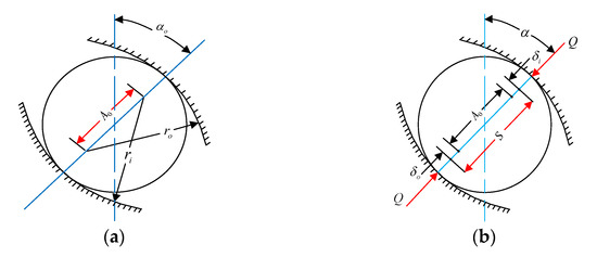 By substituting Equations (9) and (10) into the above equilibrium equations, for the bearing model considering outer ring inclination due to the misalignment between the inner and outer rings, the axial and radial displacements can be solved by the iterative method. After obtaining the displacement results, the ball-raceway contact load and contact angle at any position angle can be calculated accordingly, and the results will be used as the initial value of the quasi-static analysis.