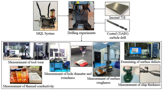 - Khanafer, K.; Eltaggaz, A.; Deiab, I. Toward Sustainable Micro-Drilling of Inconel 718 Superalloy Using MQL-Nanofluid. Int. J. Adv. Manuf. Tech 2020, 107, 3459–3469. [Google Scholar] [CrossRef]