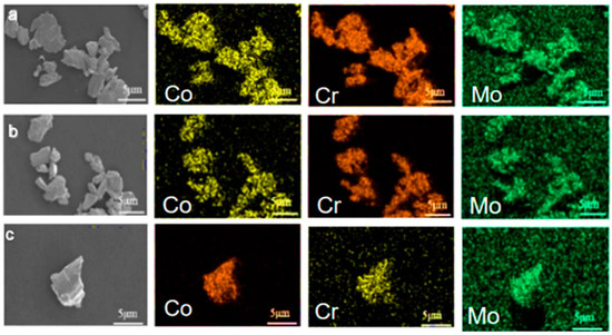 Elemental analysis of isolated CoCrMo wear debris: (a) first time, (b) second time, and (c) third time.