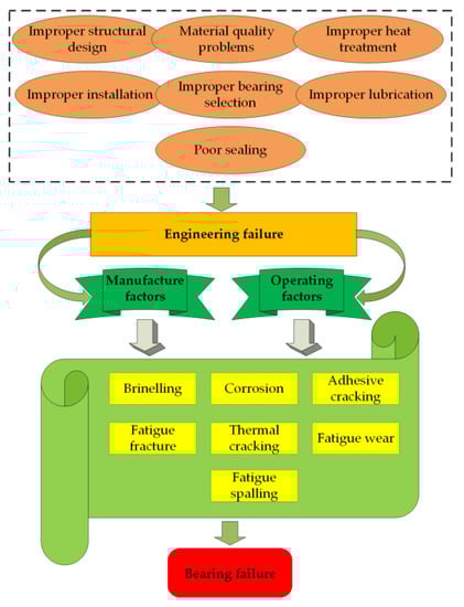 Engineering failure of bearings is attributed to a combination of various factors [94]. It is classified by the authors as follows.