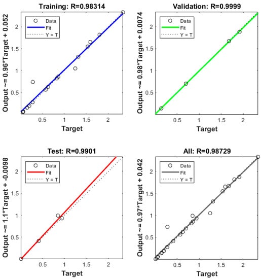 Accuracy of the modelled ANN—regression analysis of different phases.