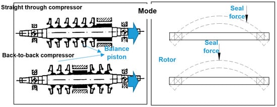 Seals, due to their relative position within the rotor-bearing system, can appreciably affect the system’s dynamic behavior, since these elements are typically located at positions that experience large-amplitude rotor motions. This assertion is of particular importance in back-to-back compressor arrangements [11], see Figure 2.