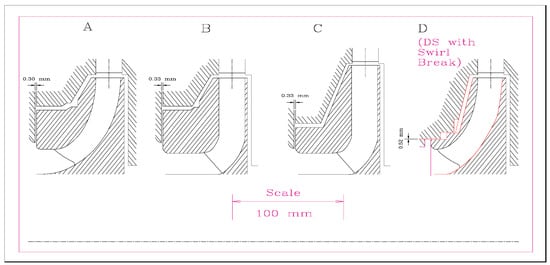 Tested pump impellers at Sulzer [42]. (A–D) denote impeller types.