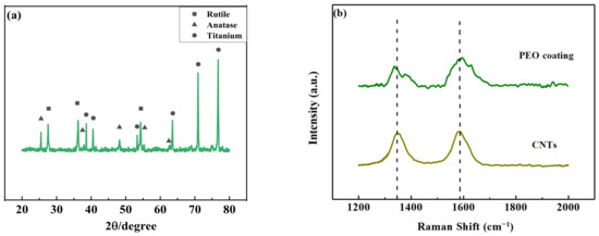 (a) XRD spectra of PEO coating and (b) Raman spectra of PEO coating and WCNT.