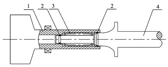 Fixed spline in helicopter tail drive shafts [8]. 1—Output shaft of the main reducer; 2—O-ring; 3—Spline; 4—Tail drive shaft.