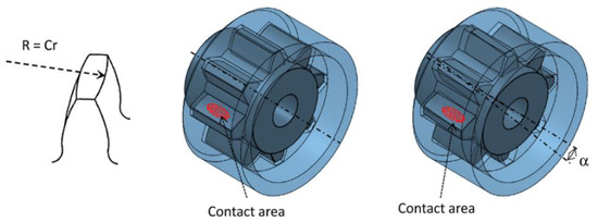 Crowned spline and its misaligned engagement state [10].