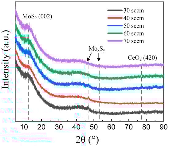 Tian, C.; Cai, H.; Xue, Y.; Pei, L.; Yu, Y. Effect of Argon Flow Rate on Tribological Properties of Rare Earth Ce Doped MoS2 Based Composite Coatings by Magnetron Sputtering. Lubricants 2023, 11, 432. https://doi.org/10.3390/lubricants11100432
