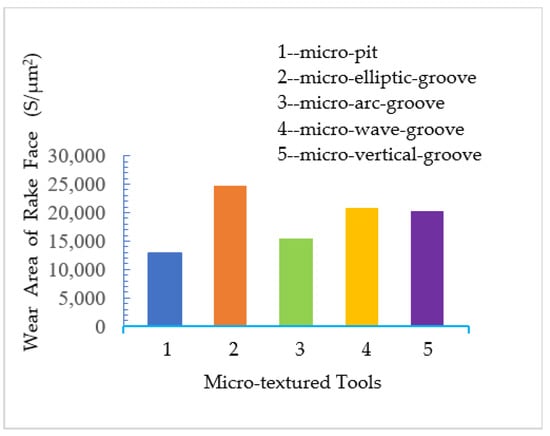 The calculation results of the wear area of the rake face of the five micro-textured tools using the infinitesimal method are shown in Table 3, and the histogram of the wear area of the rake face of the five micro-textured tools is shown in Figure 12.