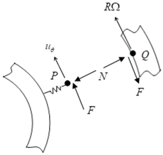 Therefore, the contact friction force in Figure 3 can be obtained from the direction vector of the relative velocity such that