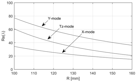 Real parts of the system eigenvalues with respect to the shoe radius.