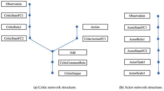 The configuration of the critic network is detailed in Table 1, while the actor network’s setup is summarized in Table 2. Several key parameters deserve attention. Firstly, there is a notable disparity in the learning rates between the actor and critic networks. Typically, the critic network employs a learning rate approximately an order of magnitude larger than that of the actor network. For example, if the critic network’s learning rate is set to 1 , then it is advisable to set the actor network’s learning rate at 1 × 10−4. This choice is motivated by the fact that the gradient used to update the actor network is derived from the critic network. Secondly, a gradient threshold is introduced as a parameter. Lastly, regularization is employed, introducing a penalty term into the cost function to enhance model robustness, mitigate overfitting, and improve overall accuracy. Specific values for these parameters are provided in Table 3. In addition to neural network parameters and regulations, agent settings are also outlined in Table 4.