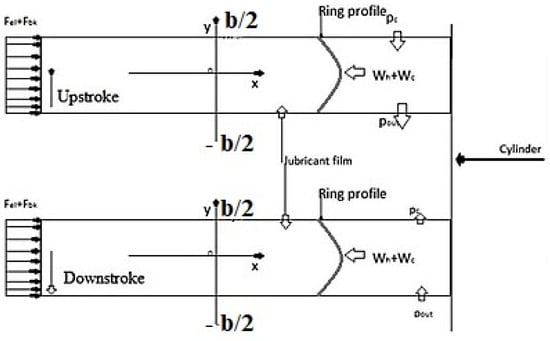 7] have exhibited significant progress by including the thermal effect of the ring-lined conjugate surface conditions and pressure in the cylinder deterioration. These papers illustrate that the friction mechanism is significantly impacted by factors such as the surfaces of the ring and cylinder, as well as the flow conditions and minimum thickness of lubricant’s film. Additionally, the flow of lubricant within the ring–liner junction demonstrates a heightened level of complexity. Shahmohamadi et al. [