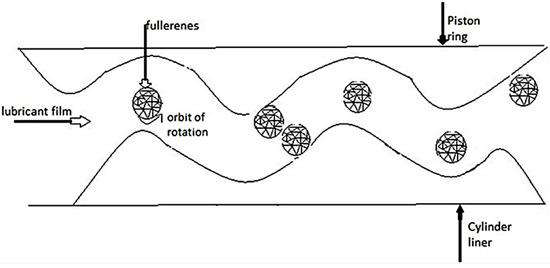 Figure 2, below, shows how the fullerenes really do affect the contact between the two surfaces and how their shape really does help and plays a key role in their role to reduce the friction and, as a result, the wear.