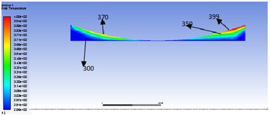 Figure 14 shows. As expected, the differential is observed near the piston ring, which has heat flux, and so the temperature varies in the area next to it. The temperature of the cylinder is considered to be 398 K.