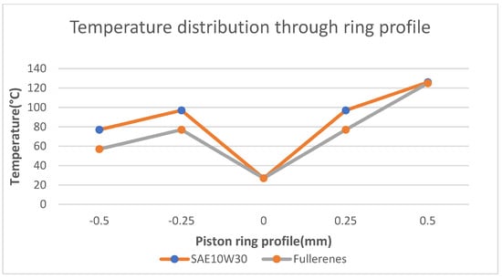 The temperature distribution through piston ring profile is shown in