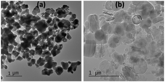 The TEM images of the reinforcement particles. (a) VC microparticles, (b) BN nanoparticles.