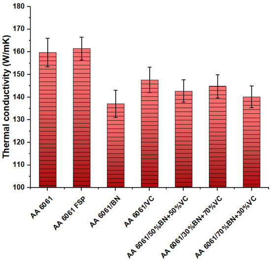 In contrast, the incorporation of VC particles has the potential to enhance the thermal conductivity of the material. This phenomenon can be attributed to the high thermal conductivity shown by VC particles, which facilitates the establishment of a highly interconnected network of heat flow pathways.