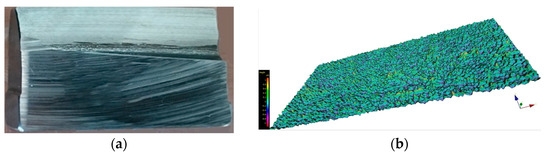 Measurement of gear surface micro-topography: (a) specimen, (b) 3D micro-topography of gear surface.