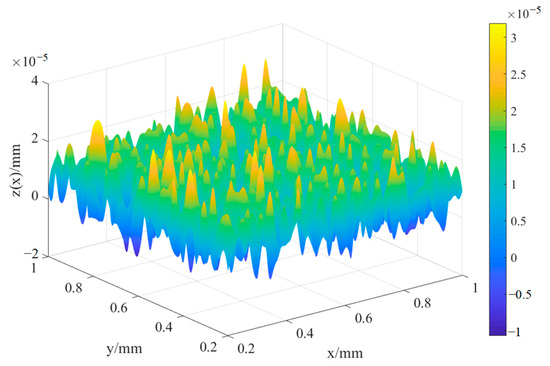According to the characterization parameters D and G measured using the experiments shown in Figure 1, the micro-topography of the gear surface could be reconstructed, as shown in Figure 2. It can be observed that the micro-topography of the gear surface was well simulated by fractals.