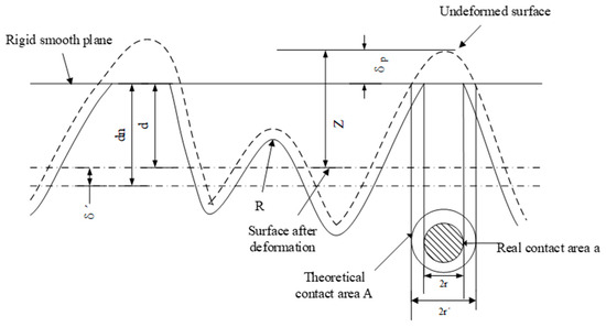 In the elastic deformation stage, the contact area a is expressed as [5]: . When the deformation of asperity is , the contact area in the elastic deformation stage of asperity is: