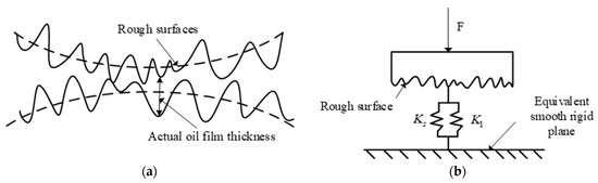 Contact diagram of joint surface under mixed lubrication: (a) equivalent interface, (b) parallel contact mode.