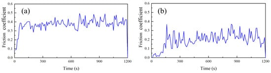 Friction coefficient: (a) TC4 substrate; (b) Ni-based coating.
