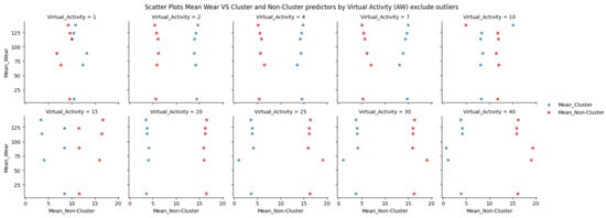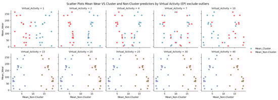 Figure 12, we computed the average for the attributes of both cluster and non-cluster chemical predictors for each chemical code. When plotted against their average wear, the following distinct patterns emerged: