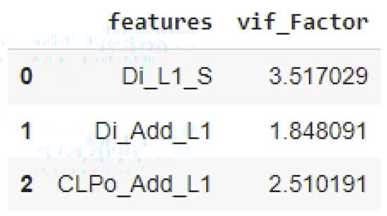 To address issues with multicollinearity, we chose to include only three predictors (CLPo_Add_L1, Di_L1_S, and Di_Add_L1) in our model. These three predictors were chosen due to their low variance inflation factors (VIFs) (