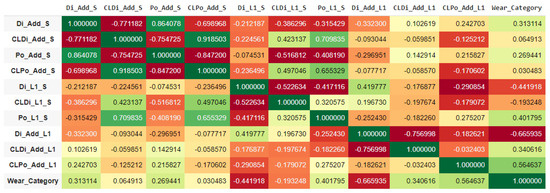 Figure 20), which indicates insignificant collinearity issues. In addition, their correlation coefficients with the wear category are the highest compared to those of the other variables (