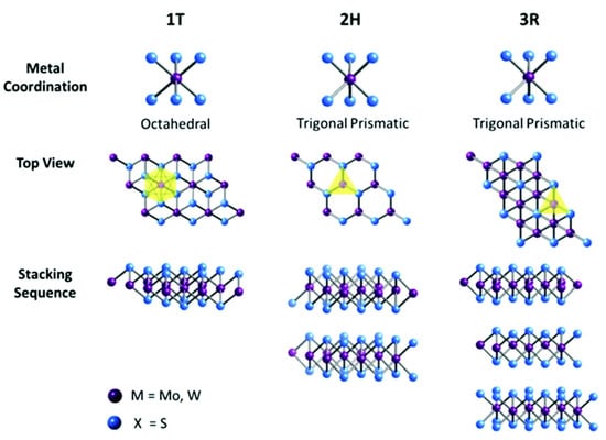 1T, 2H, and 3R phases of MoS2 (Reproduced from Ref. [29] with permission from the Royal Society of Chemistry).