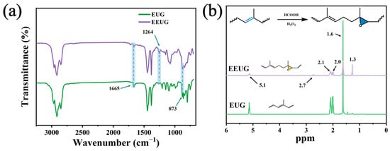 IR image (a) and 1H NMR spectrum (b) of EEUG.