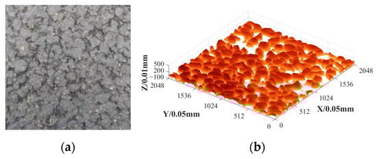 Comparison between the original surface and the 3D reconstructed surface: (a) original pavement texture; (b) reconfigured pavement texture.