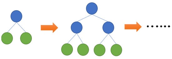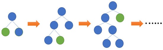 LightGBM employs the leaf growth mode, which, compared to hierarchical growth, swiftly identifies leaf nodes with higher gain, thereby reducing the depth of the decision tree. Most network models in previous studies adopted the level-wise decision-tree growth strategy (Figure 11), whereas LightGBM utilizes the leaf-wise algorithm with depth restriction (Figure 12). In each iteration, LightGBM identifies the leaf with the greatest splitting gain among all current leaves and subsequently splits. The advantage of the leaf-wise algorithm lies in its smaller error compared to level-wise algorithms when the number of splittings is the same, resulting in higher precision. However, the leaf-wise algorithm may lead to the growth of a deeper decision tree, potentially causing overfitting of the target data. To counter this, LightGBM incorporates a depth threshold into the leaf-wise algorithm to prevent overfitting while maintaining efficiency.