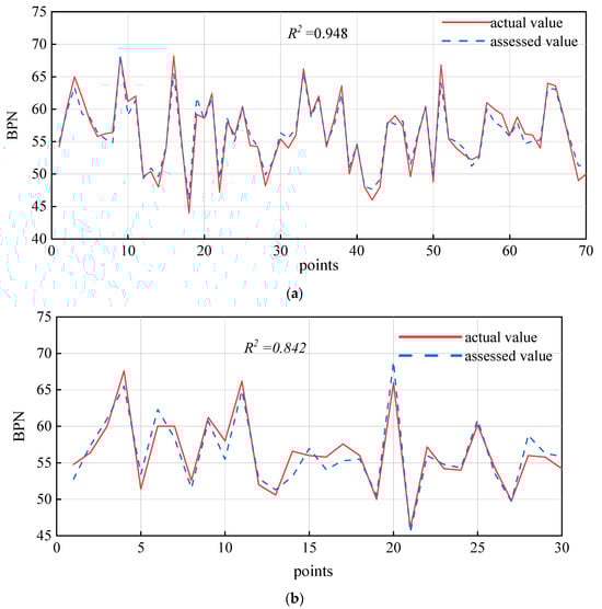 Following the pavement’s macro- and microtexture separation theory, specific feature indices for macro- and microtextures are individually calculated—namely, Macro_MPD, Micro_MPD, Macro_Ra, Micro_Ra, Macro_RMS, Micro_RMS, Macro_Rsk, Micro_Rsk, Macro_Rku, Micro_Rku, Macro_SV2pts, and Micro_SV2pts, a total of 12 characteristic indicators and the friction coefficient (BPN), are input into the LightGBM model, and the results are presented in Figure 14.