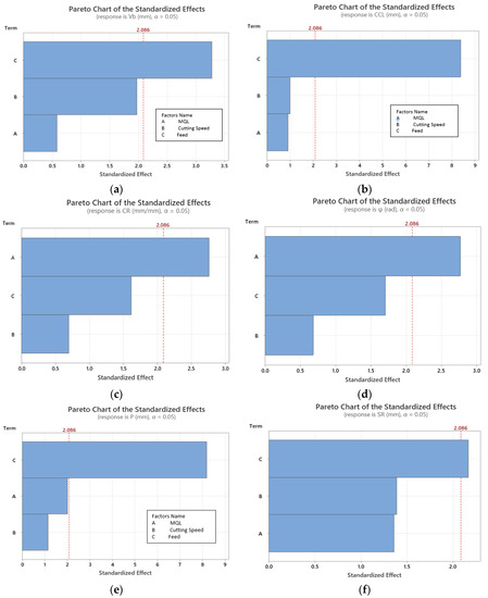 - Using the variance analysis conducted by the Minitab program, the MQL was regarded as one of the critical variables in the optimization process with a contribution of 20%. This signifies the important role of the cooling and lubrication effects provided by the usage of the MQL in reducing tribological friction forces and cutting temperatures;
