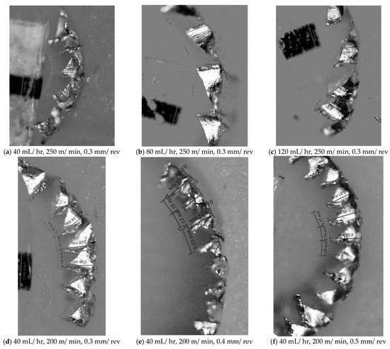 - Moraiti, M.; Belis, T.; Pappa, M.; Kyratsis, P.; Maravelakis, E.; Antoniadis, A. Chip formation characteristics in high speed machining utilizing high speed microvideography. Acad. J. Manuf. Eng. 2014, 12, 6. [Google Scholar]