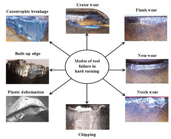 The hard turning process was invented by the automotive industry to machine difficult-to-cut material on the shop floor for the production of various parts, including transmission shafts, roller bearings, crankshafts, crank pins, and various automotive parts. It also finds an application in the die and mold-making industries, as its job is to give shape to raw material (hardened steel) to convert it into a die or mold. Hard turning is widely used in the aerospace industry, as it is used to manufacture an aerospace engine part that needs maximum accuracy and superior quality finished products [2,5]. The application of hard turning in various sectors was mostly made possible due to the development of cutting tool materials and novel surface coating techniques. All of these applications of hard turning suggest it turning has successfully replaced the traditional grinding process. Hard turning is often termed “finish hard turning” due to its wide application in finishing operations while machining a component.