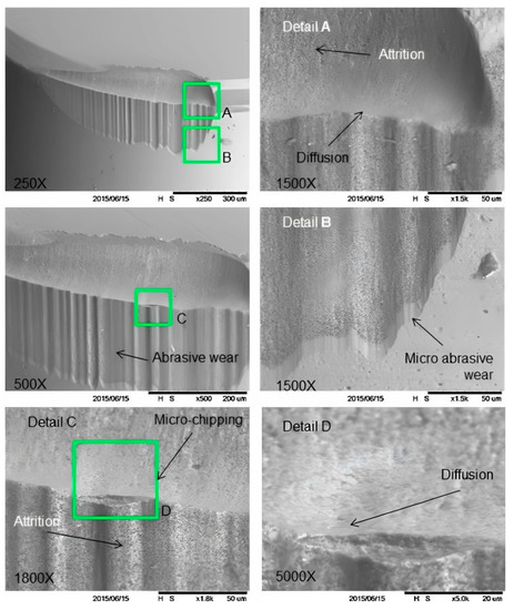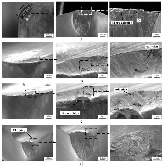Obtained images of worn tool tips under various machining situations [75].