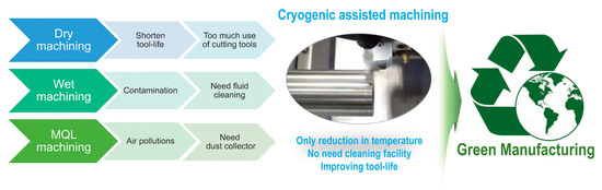 - Zindani, D.; Kumar, K. A brief review on cryogenics in machining process. SN Appl. Sci. 2020, 2, 1107. [Google Scholar] [CrossRef]