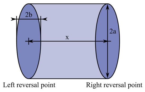 Illustration of the amplitude ratio . In dark blue, the Hertzian contact ellipse in the reversal points of the oscillatory motion is shown.